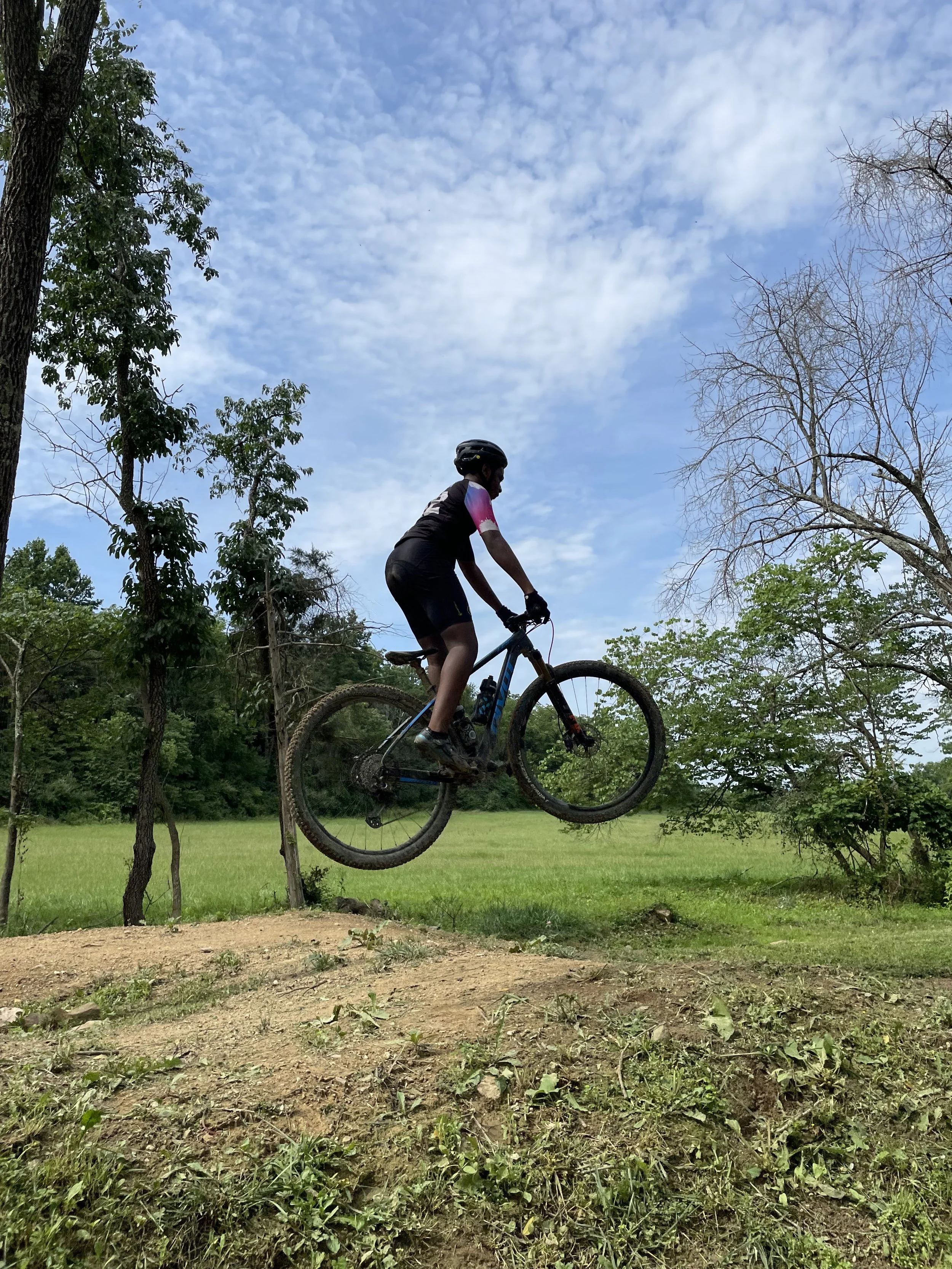 And our last new face was journalist, photographer Jess Daddio. Again coordinated by Charlie, Jess joined us as we were back working on our jumps. She rode with us, she took pictures at the skills park, then came on our last trail ride. Another adult making her living around the beauty of bikes.