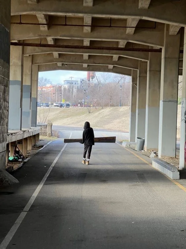 Once the boards were cut down and the edges sanded round, they delivered the goods back down to the Kickstand for install. I really like this photo - Roland walking the boards through Deepwater Terminal - it embodies so much of the process and feeling behind DIY “spots” that are culturally so important to me. The small area under the building houses some very cool local projects, and it isn’t uncommon to see skateboarders filming clips in the resonant architectural arches. It looks like Roland is about to contribute to another local-built feature.