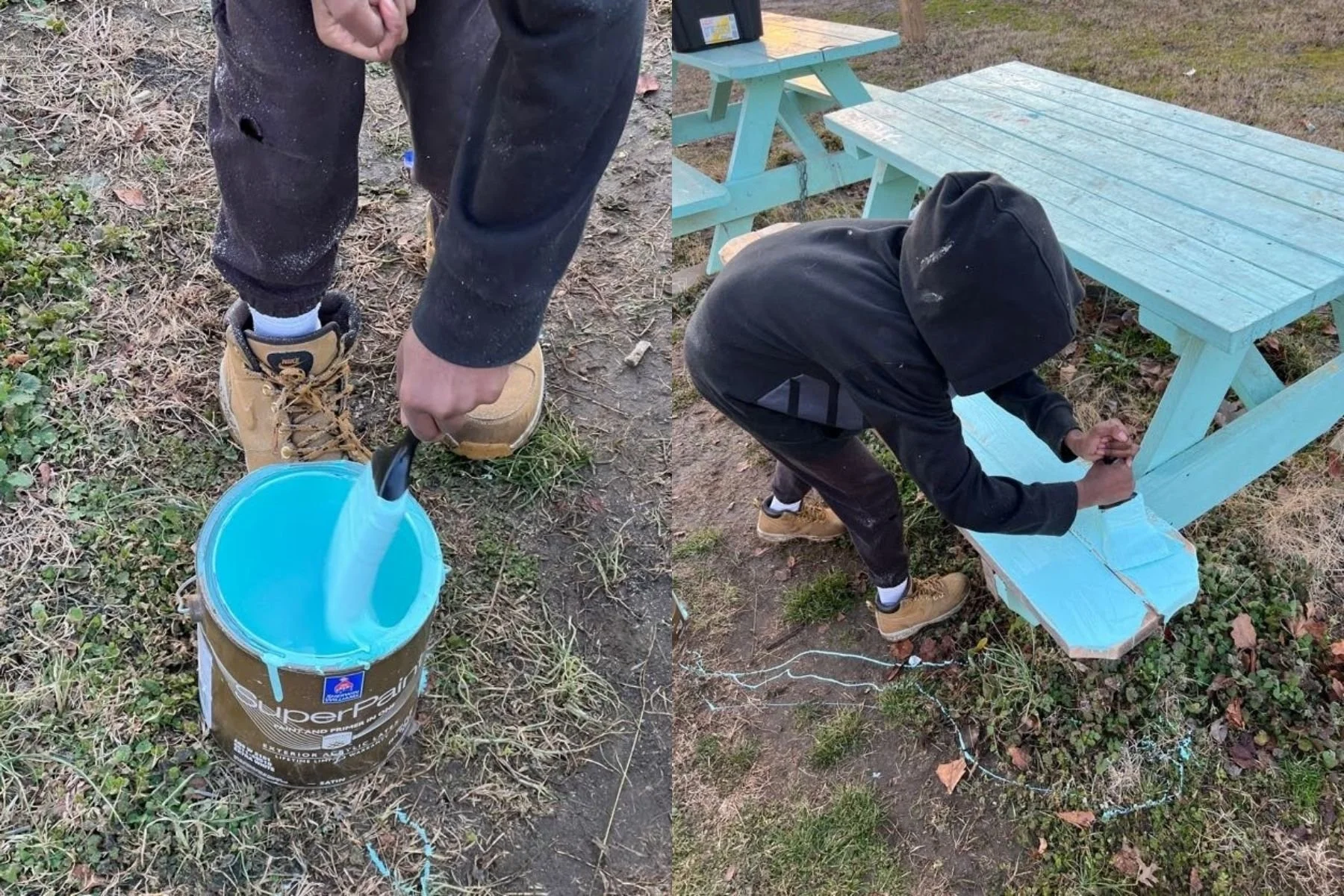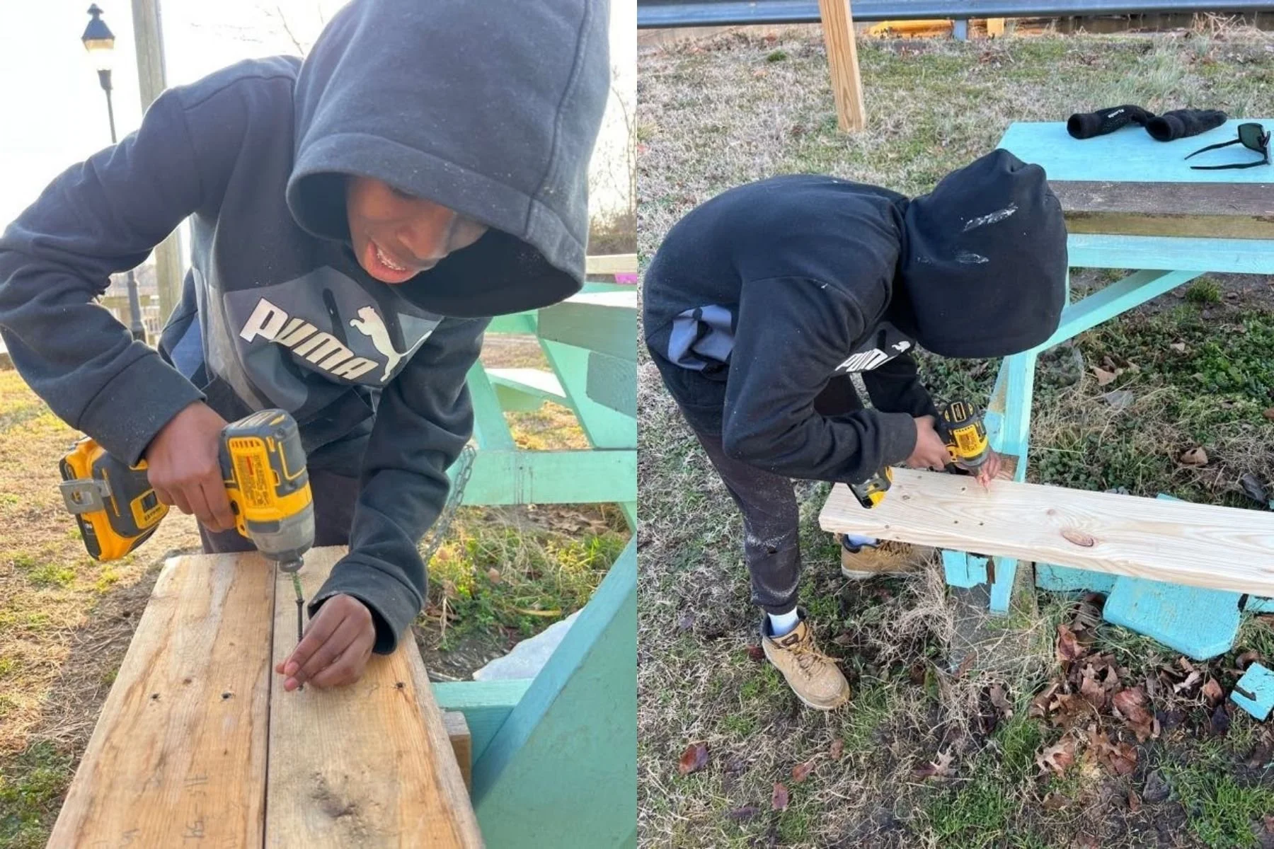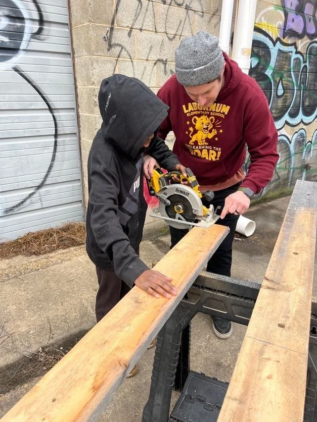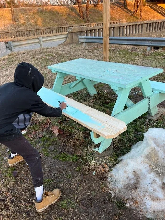 Matt and Roland couldn’t keep sitting inside. They caught up on a Monday after a couple idle weeks and set out to fix a good project - repairing one of the picnic tables beside the Kickstand. After a few different measurements, the duo headed back to our HQ to cut and sand a replacement board. This was new territory for Roland, and he was there for every step.